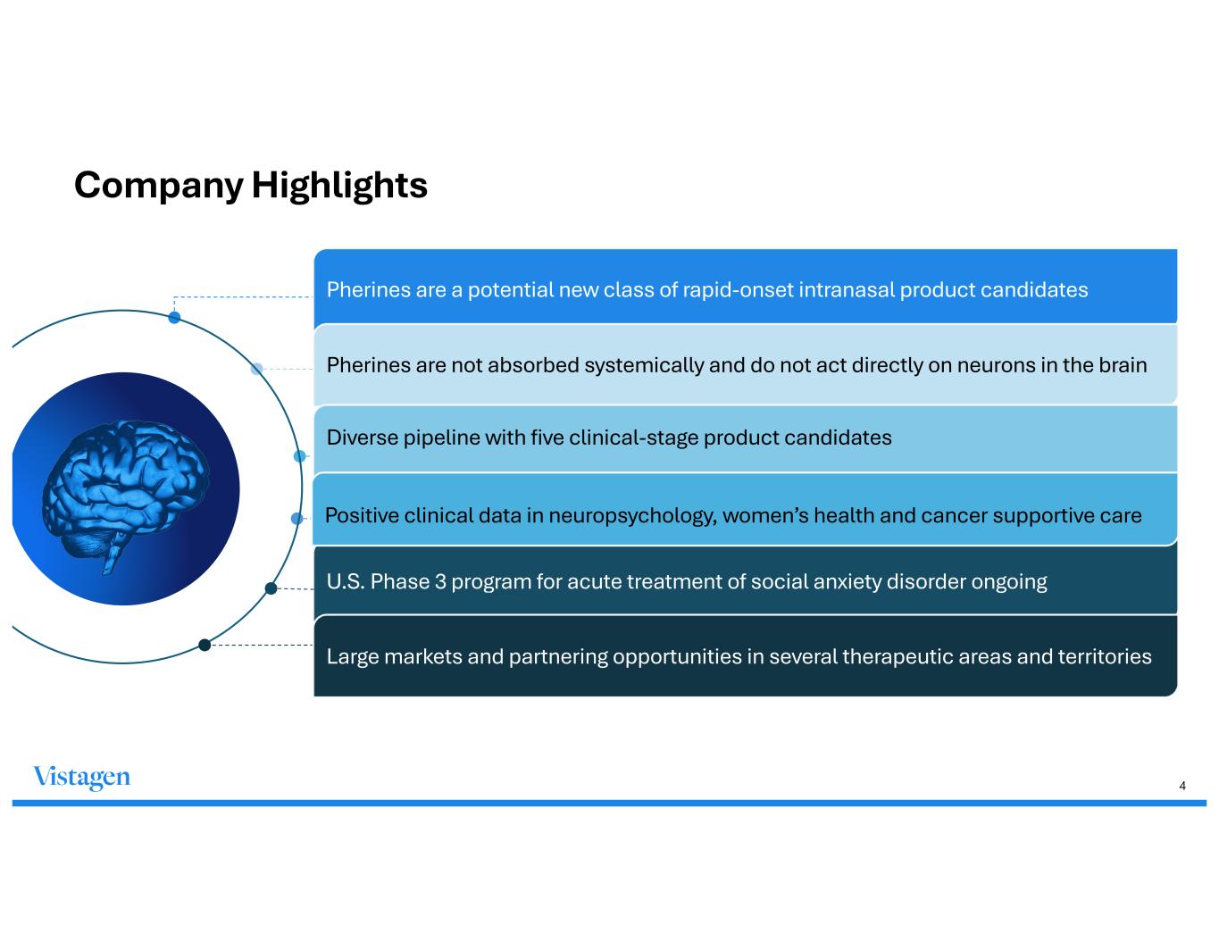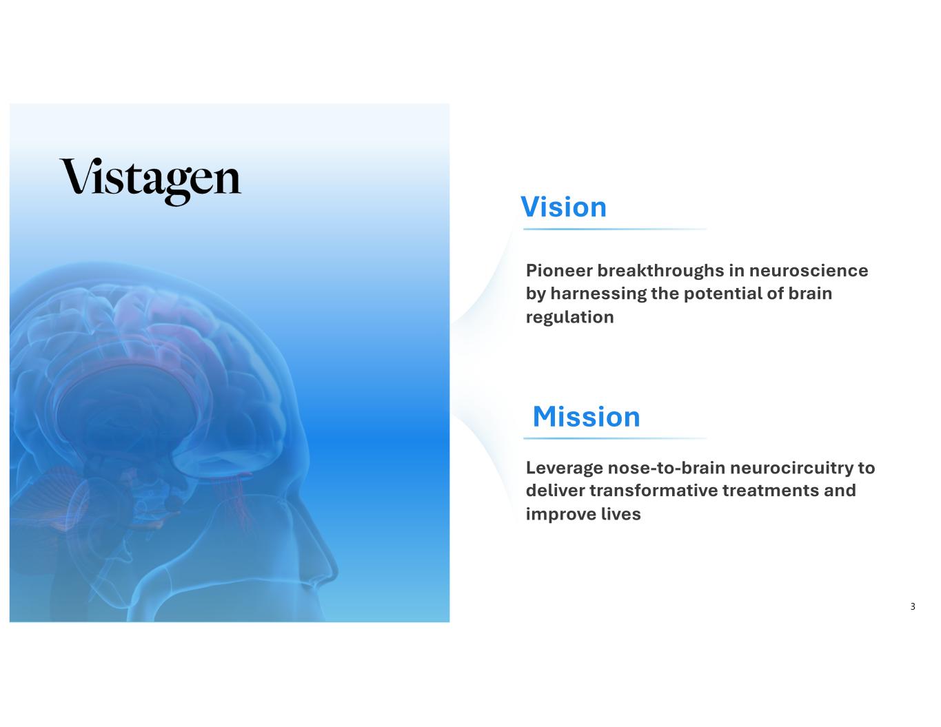 3 Vision Mission Pioneer breakthroughs in neuroscience by harnessing the potential of brain regulation Leverage nose-to-brain neurocircuitry to deliver transformative treatments and improve lives