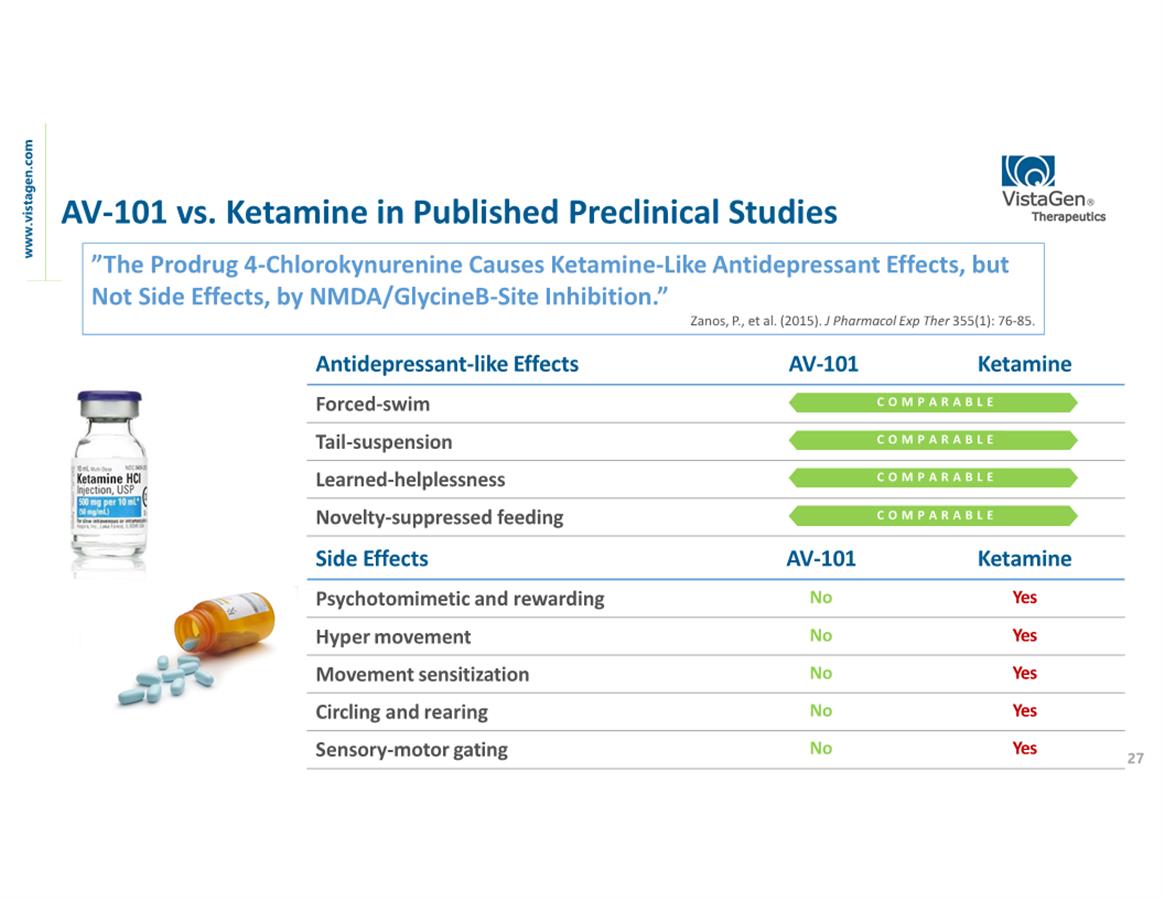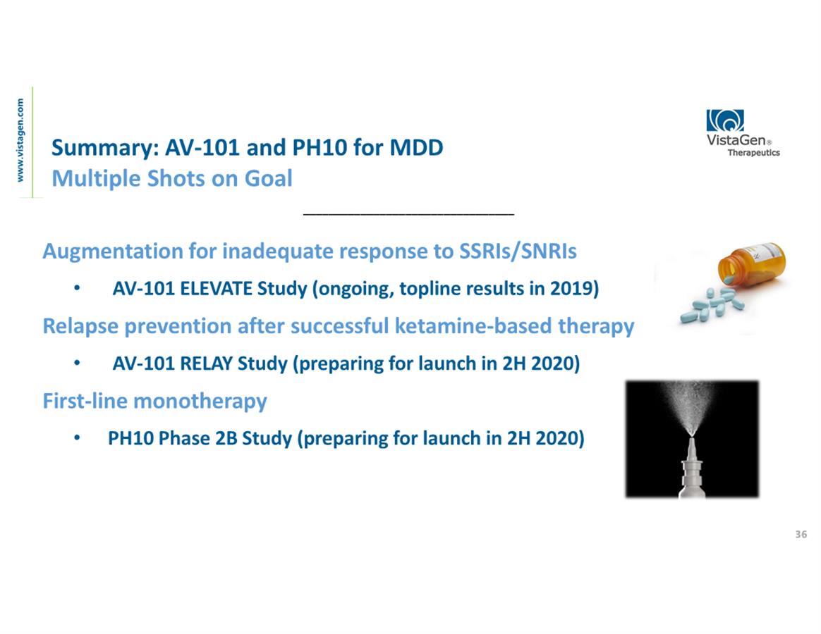 candidates, AV-101, PH10, and PH94B, with potential for at-home