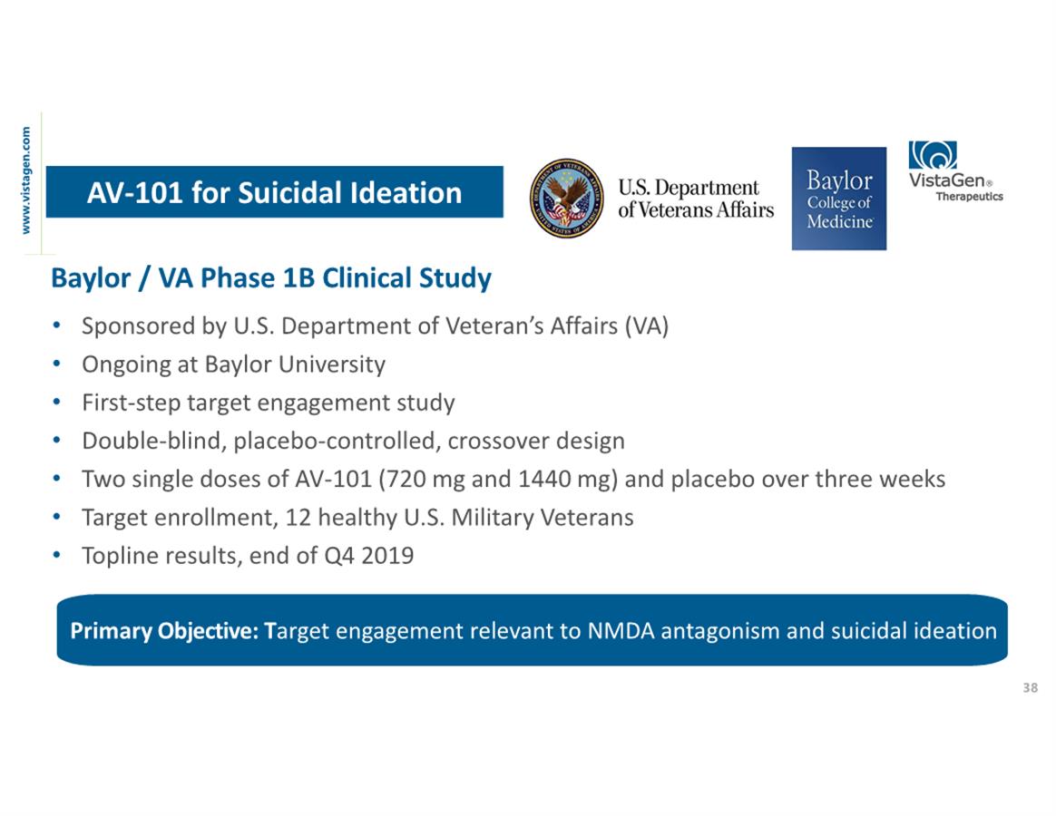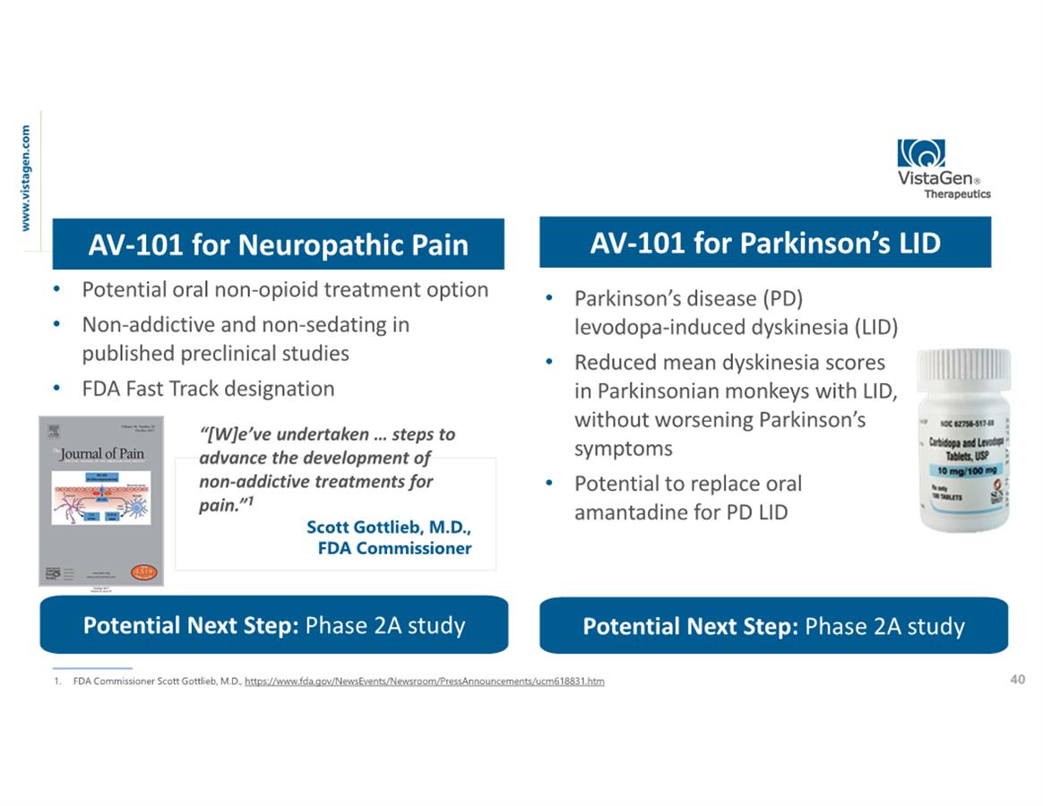 volunteer U.S. military Veterans. The FDA has granted Fast Track designation for development of AV-101 as both