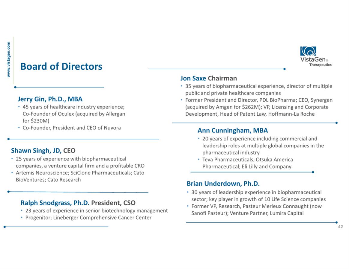 VistaGen Therapeutics is a clinical-stage biopharmaceutical company